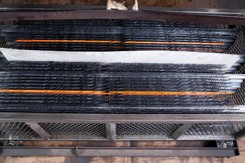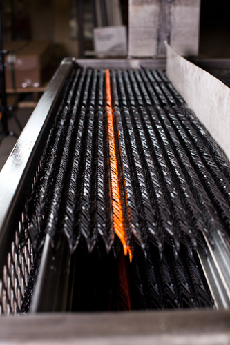 American Japanning was hired by a customer in the gun industry to custom coat a spring used in a gun magazine. This is an ongoing large volume project, in progress for over 2 ½ years with a special set up at our facilities in order to fulfill the demand. The most common dimensions for the spring are 1 ¾” in width by 15” in length, and it is composed of a black oxide stainless steel. The spring is prepped for treatment with an adhesion spray and solvent cleaning procedure, and a primer and base coat is applied. The final orange colored coat is spray painted on, for an oil coated material finish. The part is visually inspected to certify coating quality and consistency.