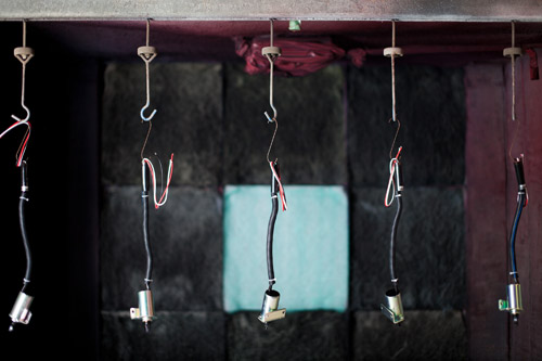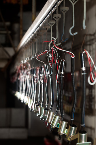 A customer in the marine industry contracted American Japanning to perform the custom coating of solenoid units. The parts are 4” in length, with varied widths. The zinc plated steel solenoids were pretreated with an adhesion spray, and a black finish coating was applied with a spray paint application. The application was an advanced mirror image line method, painting the top part then reversing to coat the bottom portion. Visual inspections were implemented to ensure accuracy and integrity.